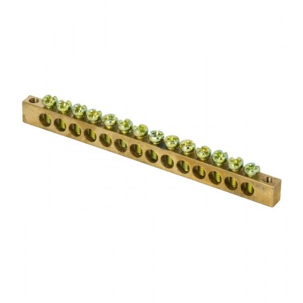 Шина PEN ноль-земля 6х9 мм 14 отверстий латунь крепеж по краям розничный стикer от EKF (арт. sn0-63-14-k-r) - это надежный элемент для объединения нулевых и заземляющих проводников в распределительных щитах. Применяется в промышленных и коммерческих системах электроустановок с номинальным напряжением до 400 В.
