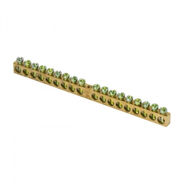 Шина PEN ноль-земля 6х9 мм 18 отверстий латунь крепеж по центру от EKF серии PROxima - это надёжный элемент для объединения нулевых и заземляющих проводников в распределительных устройствах промышленного типа. Устройство обеспечивает безопасное соединение проводов сечением 1,5–10 мм2 и рассчитано на работу при токе до 100 А.