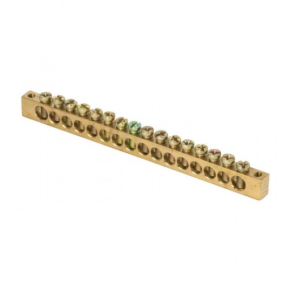 Шина PEN ноль-земля 8х12 мм 16 отверстий латунь крепеж по краям от EKF (артикул sn0-125-16-k) - это надежный элемент для объединения нулевых и заземляющих проводников в распределительных щитах. Выполненная из латуни, она обеспечивает долговечный контакт даже при высоких нагрузках и широком диапазоне температур.