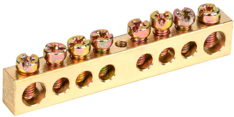 - Не предназначена для подключения алюминиевых проводов - материал шины (латунь) несовместим с алюминием без переходных наконечников