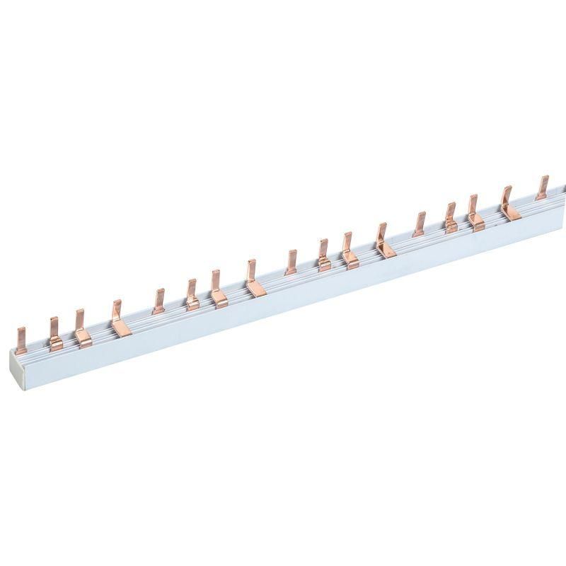 Шина соединительная типа PIN штырь 4P 63 А 1 м от Rexant (арт. 11-2247) предназначена для надёжного распределения тока между несколькими аппаратами защиты в щите - например, автоматическими выключателями и дифференциальными устройствами. Она упрощает сборку, снижает количество проводов и повышает надёжность соединений.