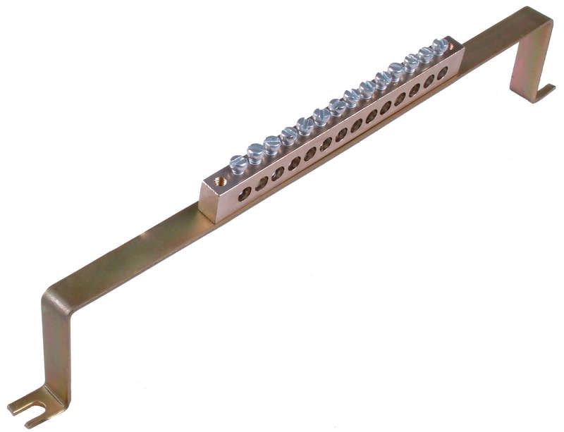 Шина крепится на специальной металлической скобе, которая фиксируется болтами к стенке щита или к металлической раме. Установка требует доступа к задней или боковой поверхности щита. Отличается от моделей на DIN-рейке тем, что не устанавливается на стандартную 35-мм рейку - её нельзя заменить на обычную шину типа “DIN” без переделки щита.