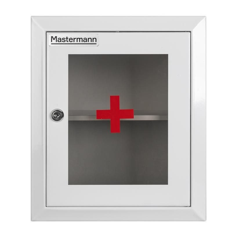 Шкаф аптечный навесной 280х330х140мм IP31 от бренда Mastermann - компактный навесной корпус для хранения медикаментов, средств первой помощи и малогабаритного оборудования в условиях, где важна защита от пыли и капель воды. Артикул 00-00015180 подходит для установки в медицинских пунктах, офисах, на производстве.