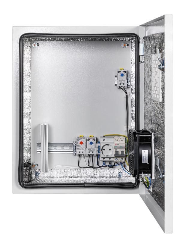 - Для повышения надёжности в условиях влажности рекомендуется установить внутри шкафа климатический навесной 400х500х250 13УТПВ-А+ (Версия 2.0) осушитель воздуха или термостат с вентилятором.