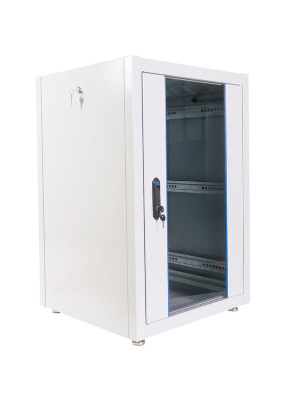 Шкаф совместим со всеми стандартными 19-дюймовыми устройствами, установленными на направляющих. Установка выполняется на ровную, несущую поверхность - пол или платформу. Крепление к полу не предусмотрено конструкцией, но рекомендуется из соображений безопасности при наличии вибраций или землетрясений. Передние стеклянные двери позволяют проводить диагностику и обслуживание без демонтажа. Для монтажа оборудования используйте крепёжные планки, входящие в комплект или приобретаемые отдельно.