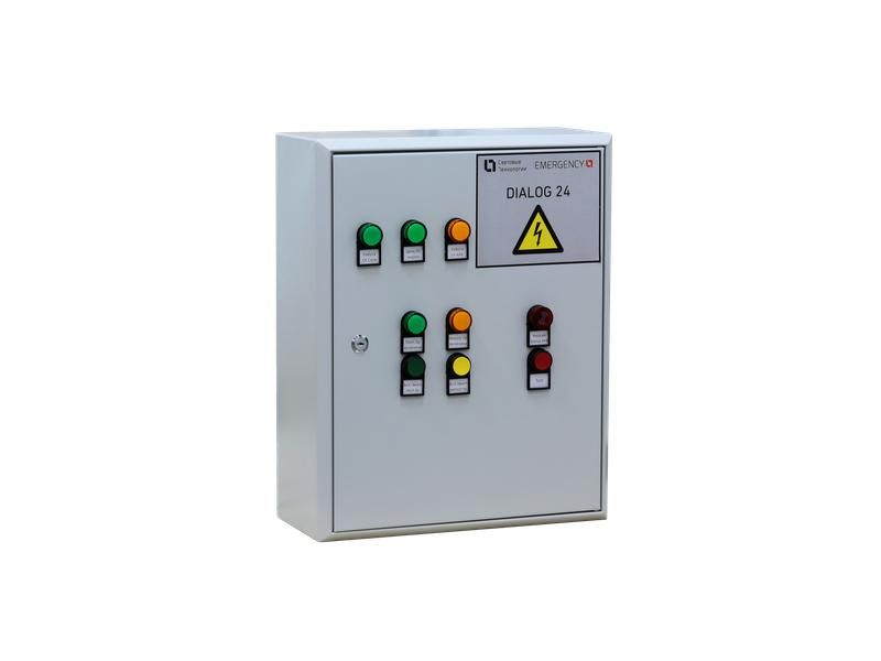 Комплект поставки включает шкаф DIALOG 24, внутри которого установлены два аккумулятора, интегрированы зарядное устройство, блок питания, контроллер и другая электроника. Аварийные светильники 24В заказываются отдельно.