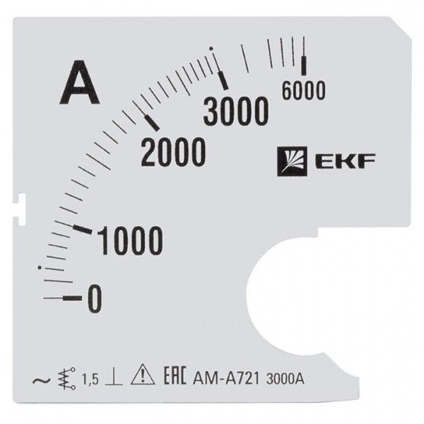 Шкала сменная для A721 3000/5А-1,5 от EKF предназначена для замены оригинальной шкалы на аналоговом амперметре AMA-721, обеспечивая корректную индикацию тока до 3000 А. Эта шкала совместима с моделями серии PROxima и используется в промышленных и бытовых электрощитах.