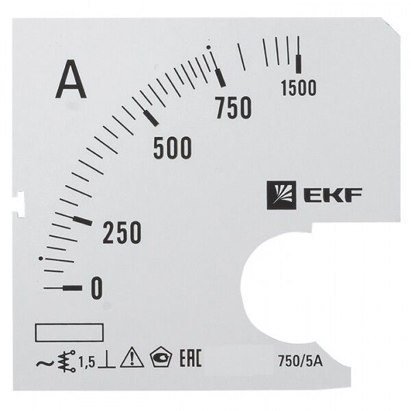 Шкала сменная для A961 750/5А-1,5 от EKF предназначена для замены оригинальной шкалы на аналоговом амперметре AMA-961 серии PROxima. Подходит для установки в электрощиты промышленных и бытовых объектов, где требуется контроль тока до 750 А.