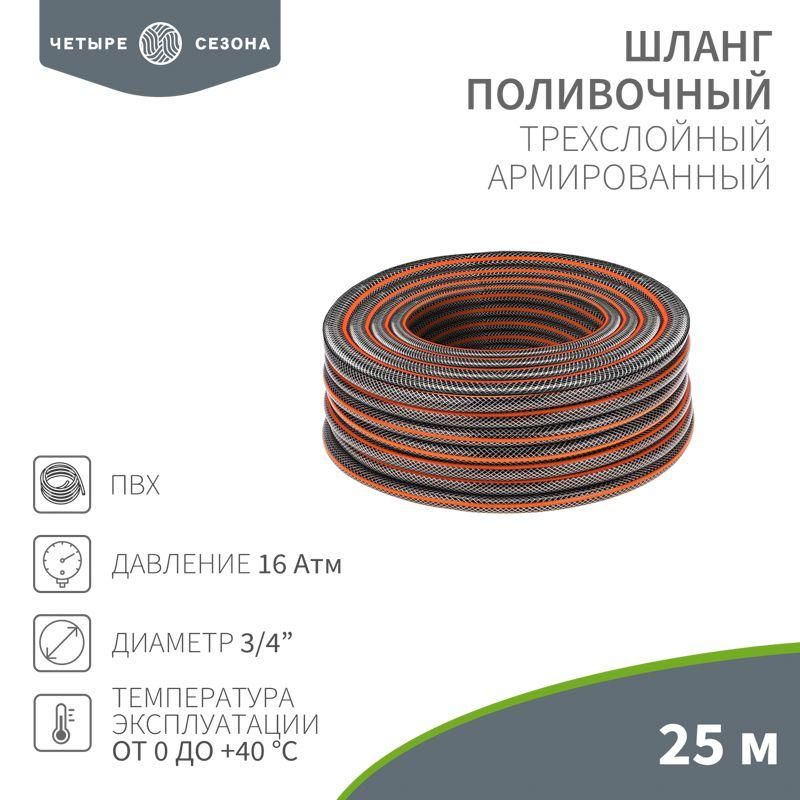 Шланг поливочный ПВХ 3-х слойный армированный 3/4дюйм 25м Стандарт Плюс ЧЕТЫРЕ СЕЗОНА 62-0226-1 MEET