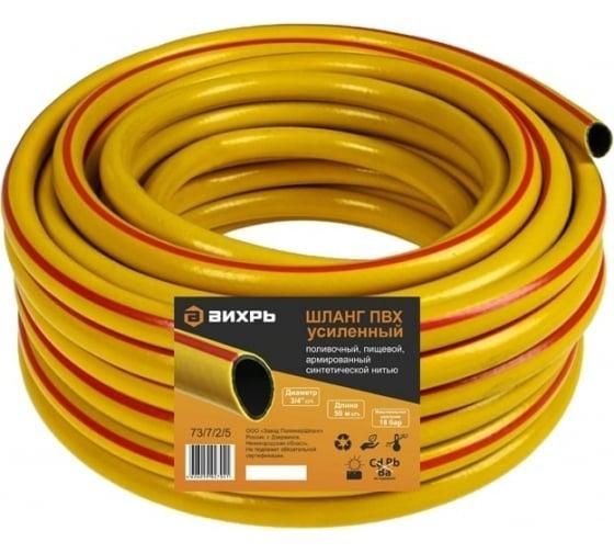 Шланг поливочный ПВХ усиленный пищевой трехслойный армированный 3/4 дюйма 50 метров желтый от бренда Вихрь (арт. 73/7/2/5) - прочный и безопасный для контакта с водой, предназначенный для длительного использования в системах орошения садов, огородов и парков. Его трёхслойная армированная конструкция обеспечивает устойчивость к давлению и механическим нагрузкам.