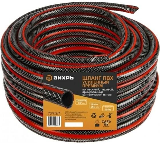 Шланг поливочный ПВХ усиленный премиумпищевой трехслойный армированный 3/4 25 м черно-красный - 73/7/2/7 Вихрь