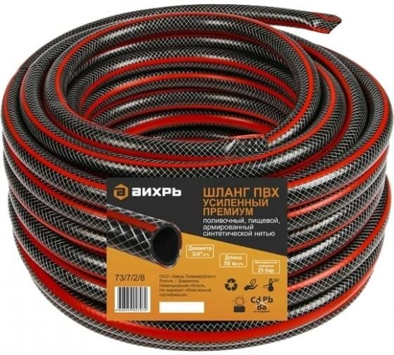 Шланг поливочный ПВХ усиленный премиумпищевой трехслойный армированный 3/4 50 м черно-красный - 73/7/2/8 Вихрь