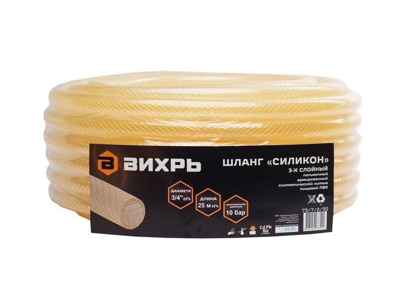 | Шланг поливочный "Силикон" трехслойный армир. 3/4дюйм 25м прозр. Вихрь 73/7/2/30 | 24.02.2026 | 1 шт. | 1 841,92 ₽ | шт. | от 1 дня |