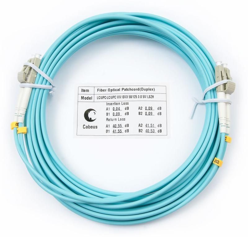 Шнур оптический duplex 5м LC-LC 50/125 мм OM3 LSZH от Cabeus - это готовый патч-корд для передачи высокоскоростных оптических сигналов на расстоянии до 5 метров. Подходит для подключения серверов, коммутаторов и другого активного оборудования в центрах обработки данных и телекоммуникационных шкафах.