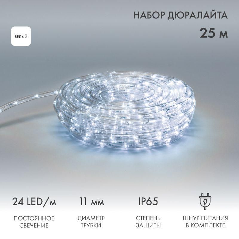 Шнур светодиодный Дюралайт фиксинг 2Вт 24LED/м бел. 25м Neon-Night 121-323-14