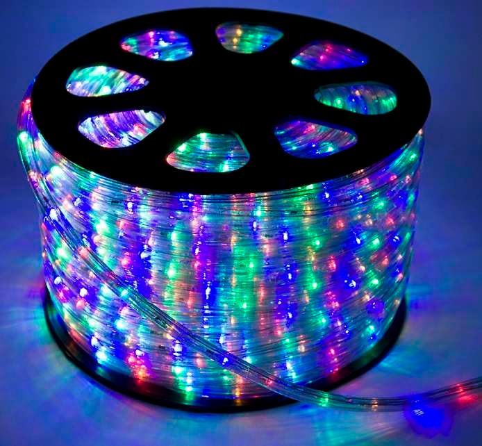 Шнур светодиодный Дюралайт 2Вт/м IP65 220В d13мм постоянное свечение мультиколор бухта 100м от КОСМОС (арт. koc-dl-2w13-rgb) - это готовый к установке цветной световой шнур с RGB-подсветкой, предназначенный для внутреннего и наружного декорирования. Его можно использовать как самостоятельную систему освещения или в сочетании с контроллером для эффектов динамики.
