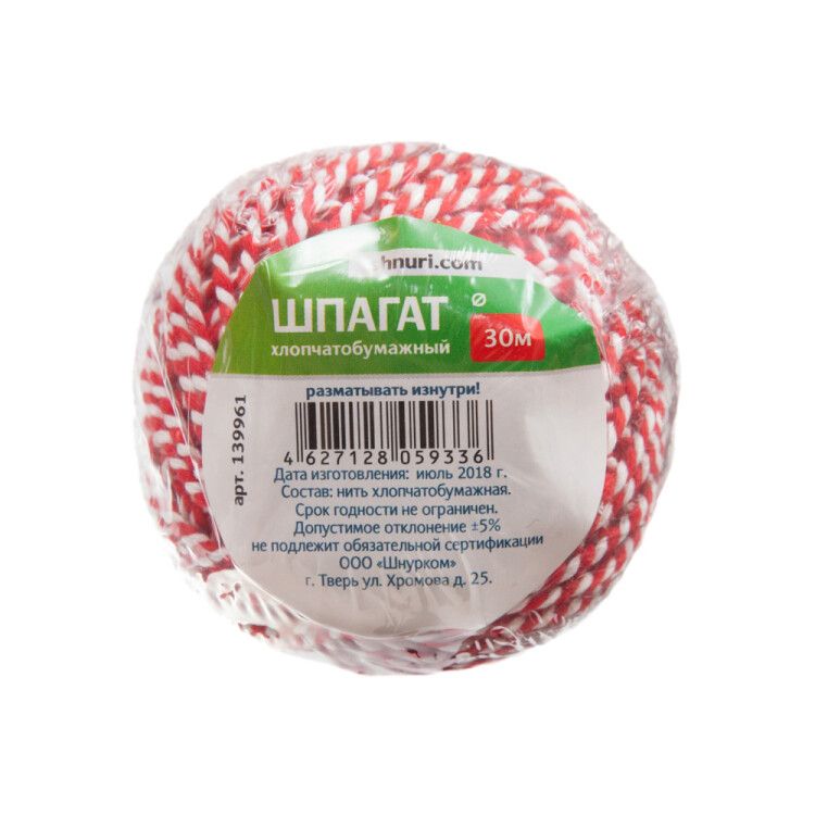 Шпагат ХБ, 30 м | 139961 Tech-KREP - это натуральный шпагат изготовленный из волокон хлопка методом кручения. Он применяется в быту для упаковки различных товаров, в том числе пищевого назначения, а также для декорирования помещений и рукоделия.
