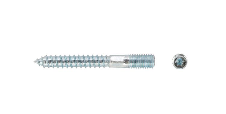 - Обладает двусторонним дизайном: с одной стороны имеет шурупную резьбу с острым наконечником, а с другой стороны - метрическую резьбу со шлицем TORX 20. Такое решение позволяет удобно и надежно закрепить шпильку с помощью соответствующего инструмента.