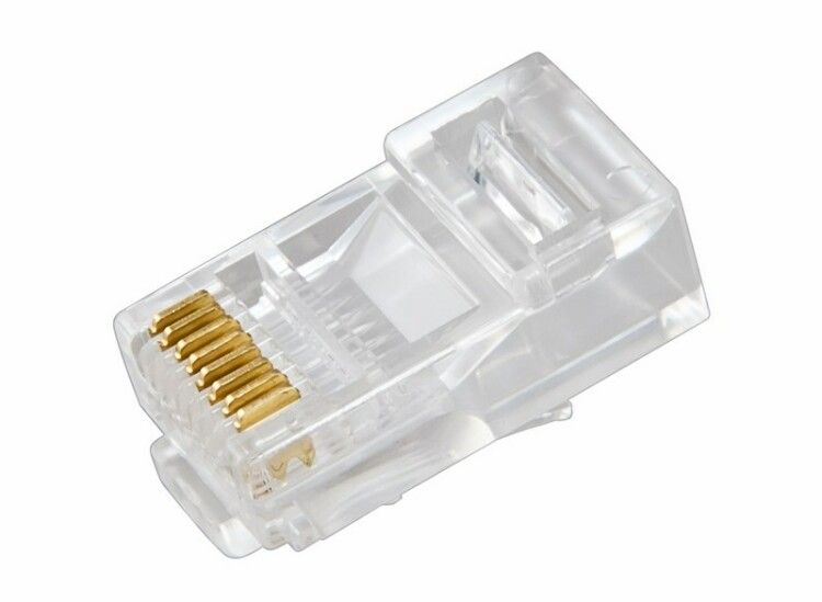 Джек компьютерный разъем модульный 8P8C кат.5E совместим с любыми кабелями типа UTP/FTP Cat.5e и ниже (Cat.5, Cat.3). Для монтажа необходим обжимной инструмент с матрицей 8P8C. Перед обжимом важно правильно упорядочить жилы по стандарту T568A или T568B, зачистить изоляцию на 2–3 см, вставить все жилы в соответствующие каналы разъёма до упора. После этого - плотно обжать инструментом. Напряжение и ток через разъём не проходят - он работает исключительно в сигнальных цепях низкого уровня.