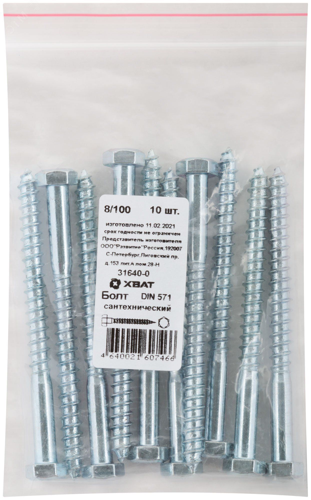 | Шуруп DIN571 8х100 сантехнический, шестигранная головка (10шт) - 31640-0 | 13.02.2026 | 2 уп. | 179,08 ₽ | уп. | от 1 дня |