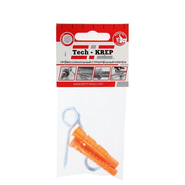 Шуруп-кольцо 5х40 с универсальным дюбелем 8,0х51 (2шт) - пакет | 109500 Tech-KREP