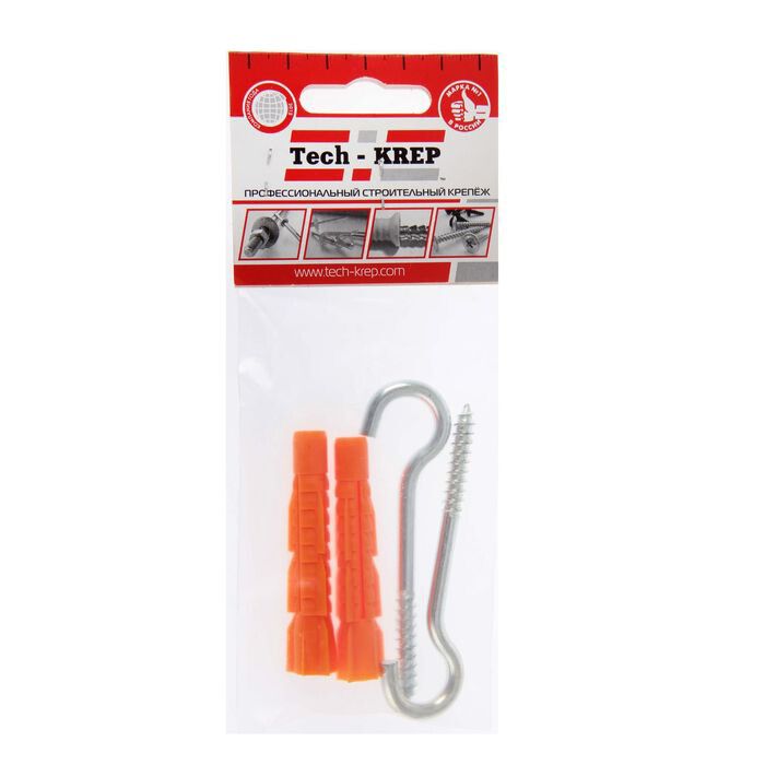 Шуруп-полукольцо 6х60 с полипропропиленовым универсальным дюбелем 10.0х61 (2шт) - 114330 Tech-KREP