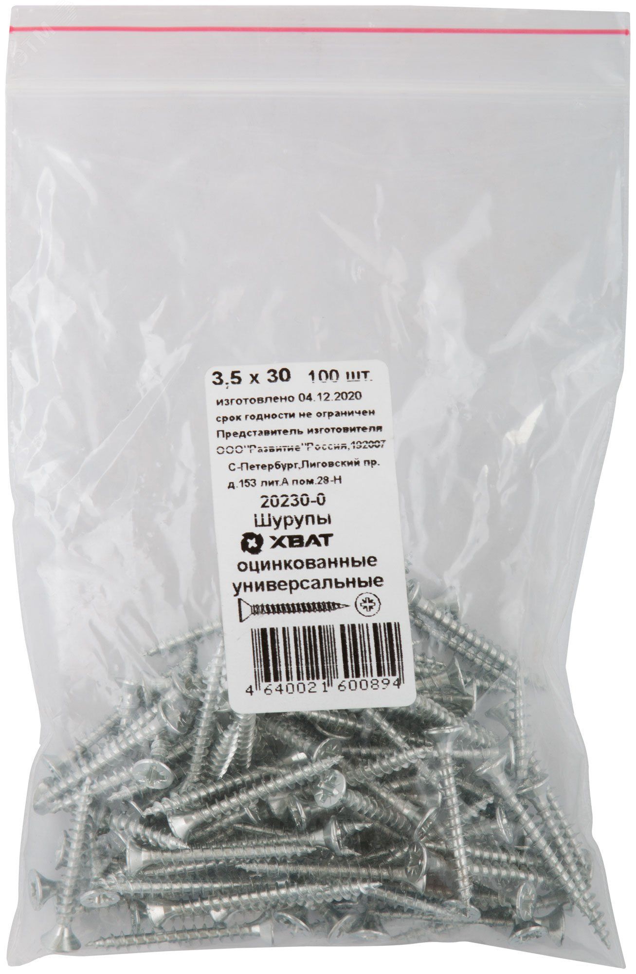 | Шуруп универсальный 3,5х30 потайная головка, остроконечный, оцинкованный (100шт) - 20230-0 | 07.03.2026 | 1 уп. | 77,32 ₽ | уп. | от 1 дня |