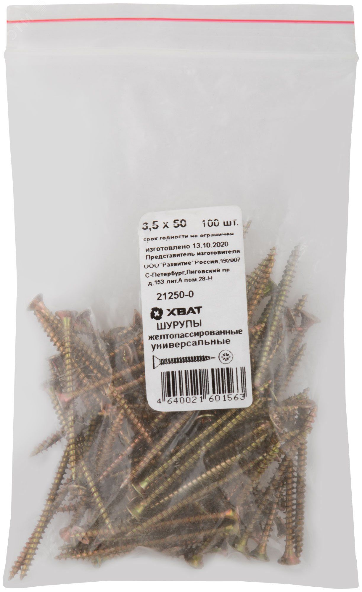 | Шуруп универсальный 3,5х50 потайная головка, остроконечный, желтопассивированный (100шт) - 21250-0 | 07.03.2026 | 1 уп. | 112,25 ₽ | уп. | от 1 дня |