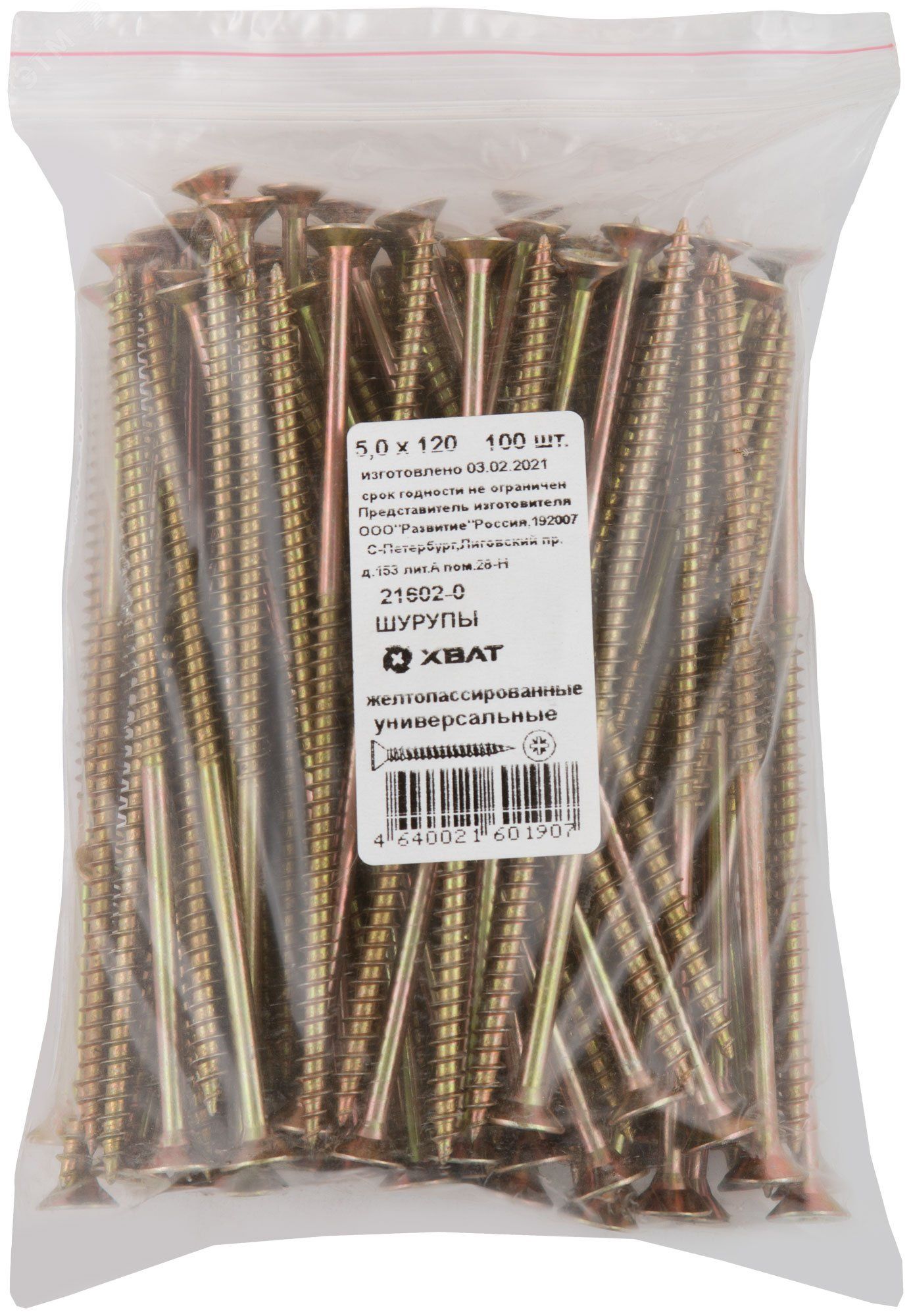 Шуруп универсальный 5х120 потайная головка, остроконечный, желтопассивированный (100шт) - 21602-0 Хортъ