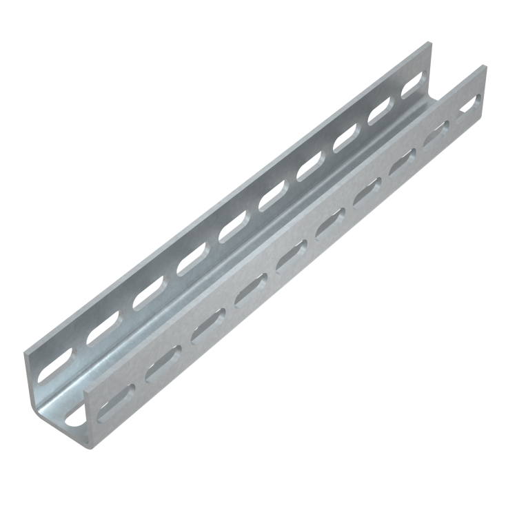 Швеллер КМ-профиль совместим с крепёжными элементами типа защёлки, которые обеспечивают быстрый и надёжный монтаж без сварки. Перфорация по трём сторонам позволяет закреплять швеллер вертикально, горизонтально или под углом - достаточно выбрать нужную грань. Для крепления используются самонарезающие винты, болты M6–M8 или специальные крепёжные планки. Посадочные отверстия расположены с шагом, соответствующим стандартным крепёжным системам. Монтаж возможен на стены, потолки, несущие конструкции и каркасы.