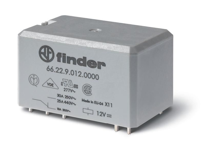 Силовое электромеханическое реле; монтаж на печатную плату, раздвоенные выводы; 2NO 30A; контакты AgNi; катушка 24В DC; степе | 662290241300 Finder 66.22.9.024.1300