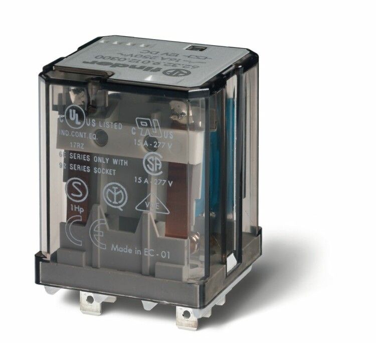 Силовое электромеханическое реле; монтаж в розетку или наконечники Faston 187 (4.8х0.5мм); 2CO 16A; контакты AgCdO | 623290120040PAS Finder 62.32.9.012.0040PAS