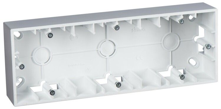 Коробка для наружного монтажа Simon 1590753-033 предназначена для установки коммутационных устройств на внешних поверхностях - например, на фасадах зданий, в технических помещениях или на улице. Несмотря на название, корпус изготовлен из АБС-пластика, а не из алюминия; цвет выполнен под металлический оттенок. Эта модель обеспечивает базовую защиту и удобный доступ к проводам благодаря задним вводам.