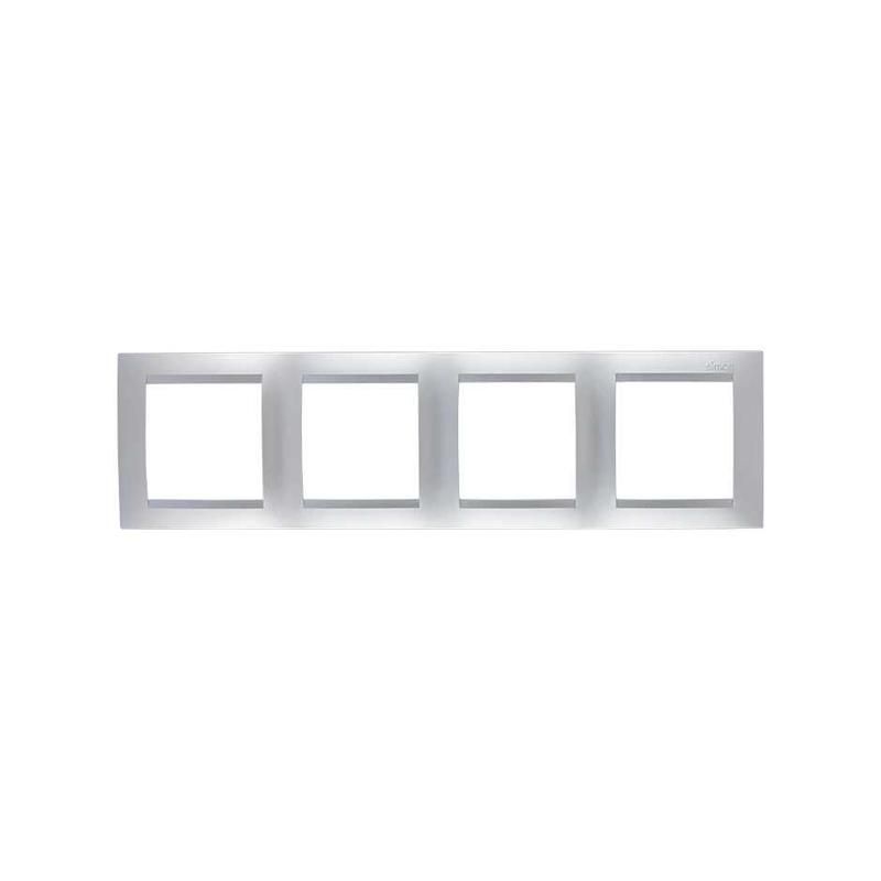 Рамка 4-постовая алюминиевая предназначена для маскировки и фиксации четырёх модульных электроустановочных изделий внутри стеновой коробки. Подходит для жилых, офисных и общественных помещений. Применяется совместно с механизмами Simon и другими устройствами, соответствующими стандартному модульному шагу 17,5 мм.