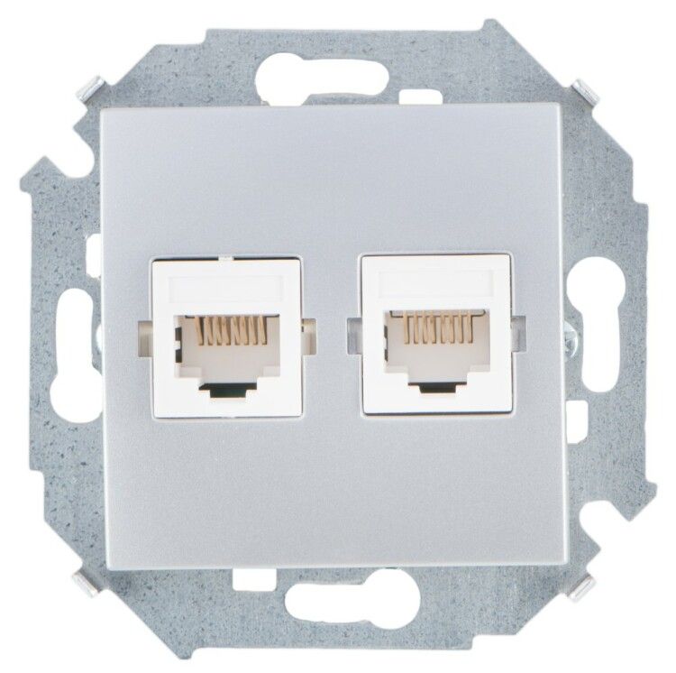 Розетка компьютерная двойная RJ45 кат.5е, алюминий совместима с любыми стандартными подрозетниками диаметром 68 мм. Для монтажа необходимо: