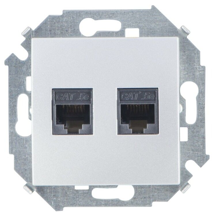 Розетка компьютерная двойная 2xRJ45 кат.5e (AMP) механизм алюминиевый от Simon - это скрытый модульный элемент для организации сетевых соединений в офисах, серверных помещениях и на рабочих местах. Артикул 1591552-033 обеспечивает надежный контакт двух Ethernet-устройств через один установочный блок.