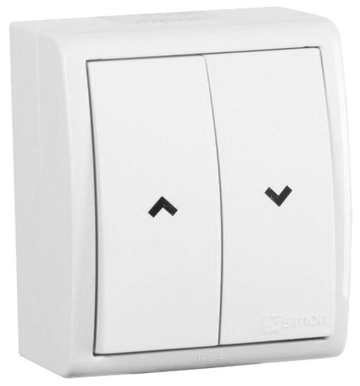 Выключатель для жалюзи кнопочный 10А 250В IP54 с/без электрической блокировки, винтовой зажим, белый, серия Simon 15 Aqua устанавливается методом открытой монтажа на стену через стандартную подрозетник или прямо на поверхность. Для монтажа требуются обычные инструменты: отвертка и плоскогубцы. Клеммы принимают провода сечением до 1,5 мм2 - не используйте более толстые провода, чтобы избежать плохого контакта. Совместим с моноблочными рамками серии Simon 15 Aqua. Электрическая блокировка исключает случайное одновременное включение обеих клавиш - важно при управлении противоположно движущимися жалюзи.
