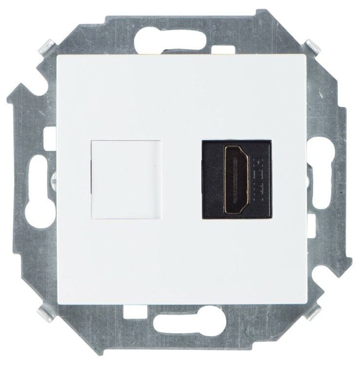 Розетка HDMI тип А, v1.4, для аудио/видео, проходная, белая используется для организации внутристенной передачи высококачественного цифрового аудио-видео сигнала. Подходит для установки в жилых помещениях, офисах, домашних кинотеатрах, настенных панелях AV-систем. Применяется там, где требуется скрытый монтаж кабеля без видимых проводов - например, за телевизором, в нишах или встроенных шкафах.