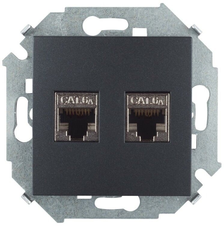 Розетка компьютерная 2-м RJ45 кат.6A AMP FTP графит Simon 1591564-038
