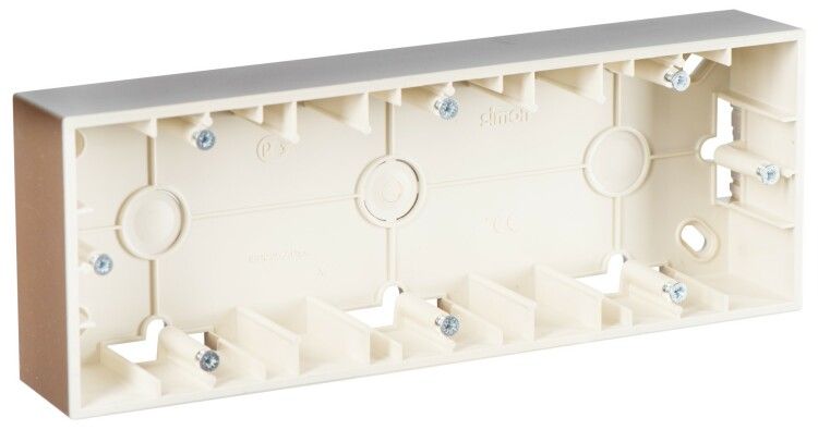 Эта монтажная коробка используется для накладного монтажа электроустановочных изделий в помещениях с нормальными условиями эксплуатации. Подходит для замены старых проводок, когда невозможно или невыгодно делать штробление стен. Коробка позволяет разместить три устройства - например, два выключателя и одну розетку - в одном компактном модуле. Часто применяется в жилых домах, офисах и общественных зданиях.