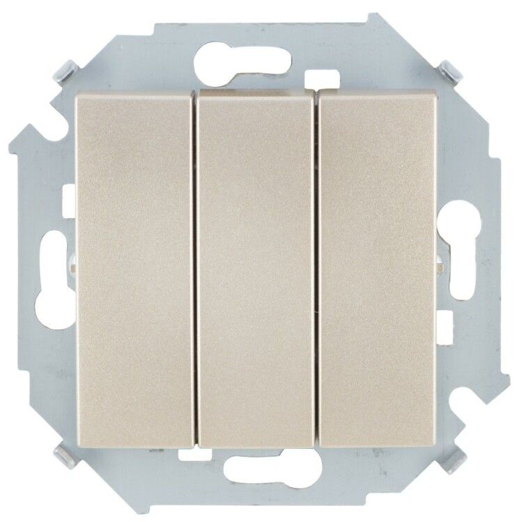 Выключатель трехклавишный 10А 250В винтовой зажим шампань от бренда Simon (артикул 1591391-034) предназначен для коммутации трёх независимых групп освещения или нагрузок в помещениях с внутренней проводкой. Механизм с матовой накладкой цвета шампань сочетает надёжную винтовую фиксацию и соответствие требованиям для условий УХЛ3.