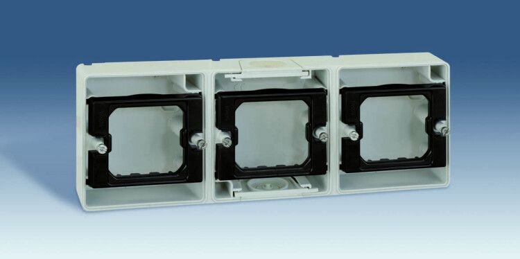 Коробка установочная 3-местная, горизонтальная, IP55, S44A, S44 Aqua, серый предназначена для размещения выключателей, розеток, терморегуляторов и других устройств управления в условиях повышенной влажности или запылённости. Подходит для установки на фасадах зданий, в подъездах, на производственных площадках, в парковках и других местах, где требуется защита от внешней среды. Благодаря всепогодному исполнению, её можно использовать вне помещений без дополнительных кожухов.
