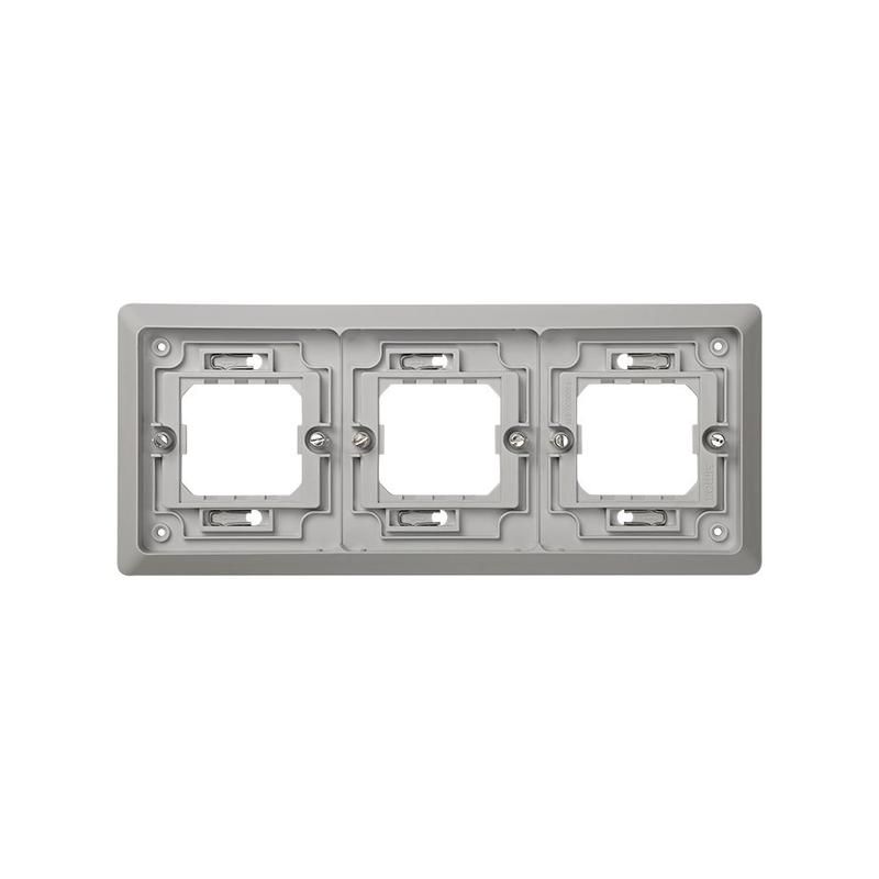 Рамка 3-местная, скрытая установка, серая, серия Simon 44 Aqua (S44A, S44 Aqua) используется для маскировки и декоративного оформления трёх установленных в стене электроустановочных изделий - например, двух выключателей и одной розетки. Подходит для жилых помещений, офисов, медицинских учреждений и других объектов, где требуется аккуратный вид проводки без внешних бортиков. Устанавливается исключительно в подготовленную нишу в стене - открытая установка невозможна.