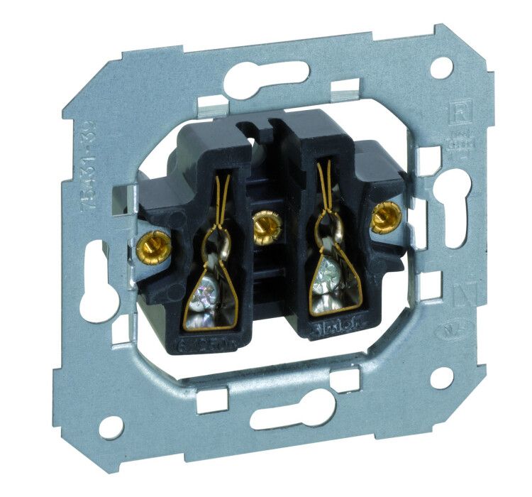 Механизм предназначен для установки в стандартную круглую или прямоугольную подрозетник глубиной не менее 45 мм. Крепление осуществляется через винты на боковых стенках механизма - совместим со всеми типичными рамками серии S82/S88. Для подключения используйте медный многожильный или одножильный кабель сечением до 1,5 мм2. Перед затяжкой клемм удалите изоляцию на 8–10 мм, проверьте плотность фиксации провода легким потягиванием. Не применяйте кабели большего сечения - возможна деформация клеммы и перегрев.