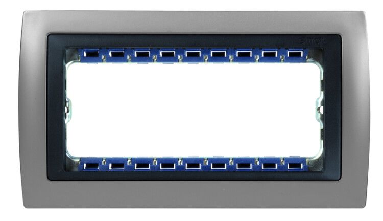 Рамка с суппортом на 5 узких модулей, алюминий-графит, серия S82C совместима со всеми стандартными узкими модулями шириной 17,5 мм, включая продукцию Simon и других производителей, соответствующих DIN EN 60670-22. Монтаж осуществляется скрытым способом: рамка фиксируется в подготовленном отверстии в панели с помощью безвинтового зажимного механизма - достаточно вставить её в проём и слегка надавить, чтобы защёлки сработали. Для демонтажа - потяните за специальные язычки снизу. Отдельно не требуются крепёжные болты или саморезы.