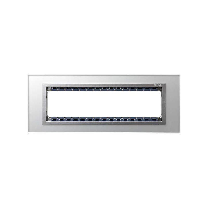 Рамка с суппортом на 8 узких модулей, стекло, серебро-алюминий, серия S82C от Simon - компактная рамка для установки встраиваемых устройств в стену, обеспечивающая надёжную фиксацию и элегантный внешний вид. Артикул 82987-62 подойдёт для систем автоматизации, жилых и офисных помещений.