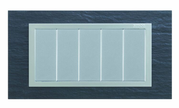 Рамка декоративная с суппортом на 5 узких модулей, камень сланец-алюминий (композит), серия S82C от бренда Simon (артикул 82957-63) предназначена для маскировки и эстетичного оформления установочных коробок с пятью узкими модулями - выключателями, розетками или другими элементами управления. Композитный материал обеспечивает прочность и современный внешний вид без необходимости в дополнительной отделке.