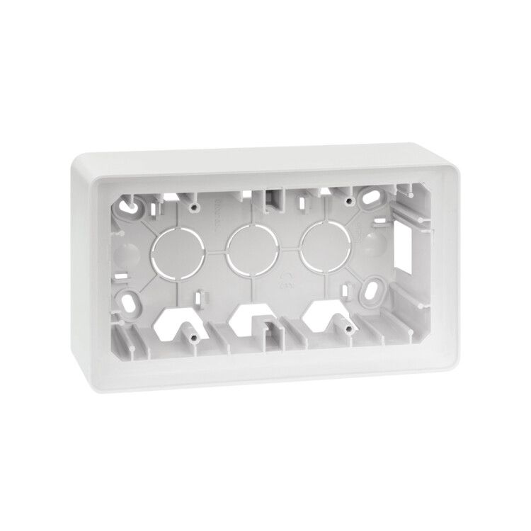 Коробка наружной установки 2 поста, белый используется для монтажа двух однополюсных устройств - например, выключателей света или розеток - на стену вне помещений или в зонах с высокой запылённостью. Подходит для улиц, подъездов, гаражей, производственных площадок. Благодаря защищённому исполнению, её можно применять там, где требуется физическая изоляция контактов, но не нужна герметичная защита от воды.