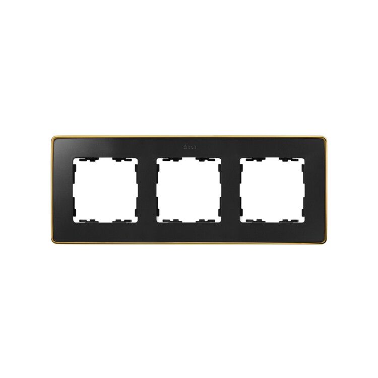 Рамка 3-постовая, цвет графит, основание золото, серия Simon 82 Detail предназначена для декоративного оформления трёх модульных устройств - например, двух выключателей и одной розетки. Подходит для внутренней проводки в жилых, офисных и общественных помещениях. Устанавливается в подготовленную штробу или коробку, обеспечивает аккуратный переход между корпусом устройства и отделкой стены.
