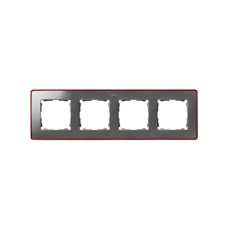 Рамка 4-м Simon82 Detail холодный алюм.; основание красн. Simon 8201640-255
